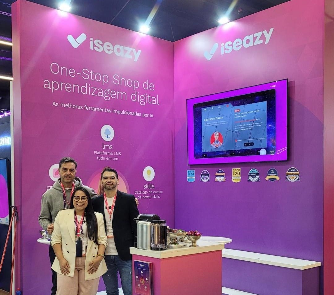 Nossa primeira participação em um evento presencial no Brasil – um mercado estratégico em nossa expansão internacional – tem sido um sucesso e o cenário perfeito para apresentar são as ferramentas de e-learning da isEazy. Em nosso estande no Centro de Convenções Pro Magno, centenas de profissionais do setor puderam aprender sobre nossas soluções baseadas em IA, testar as funcionalidades mais recentes e aprender como ajudamos as organizações a criar, gerenciar e dimensionar seu treinamento com maior agilidade e eficiência.