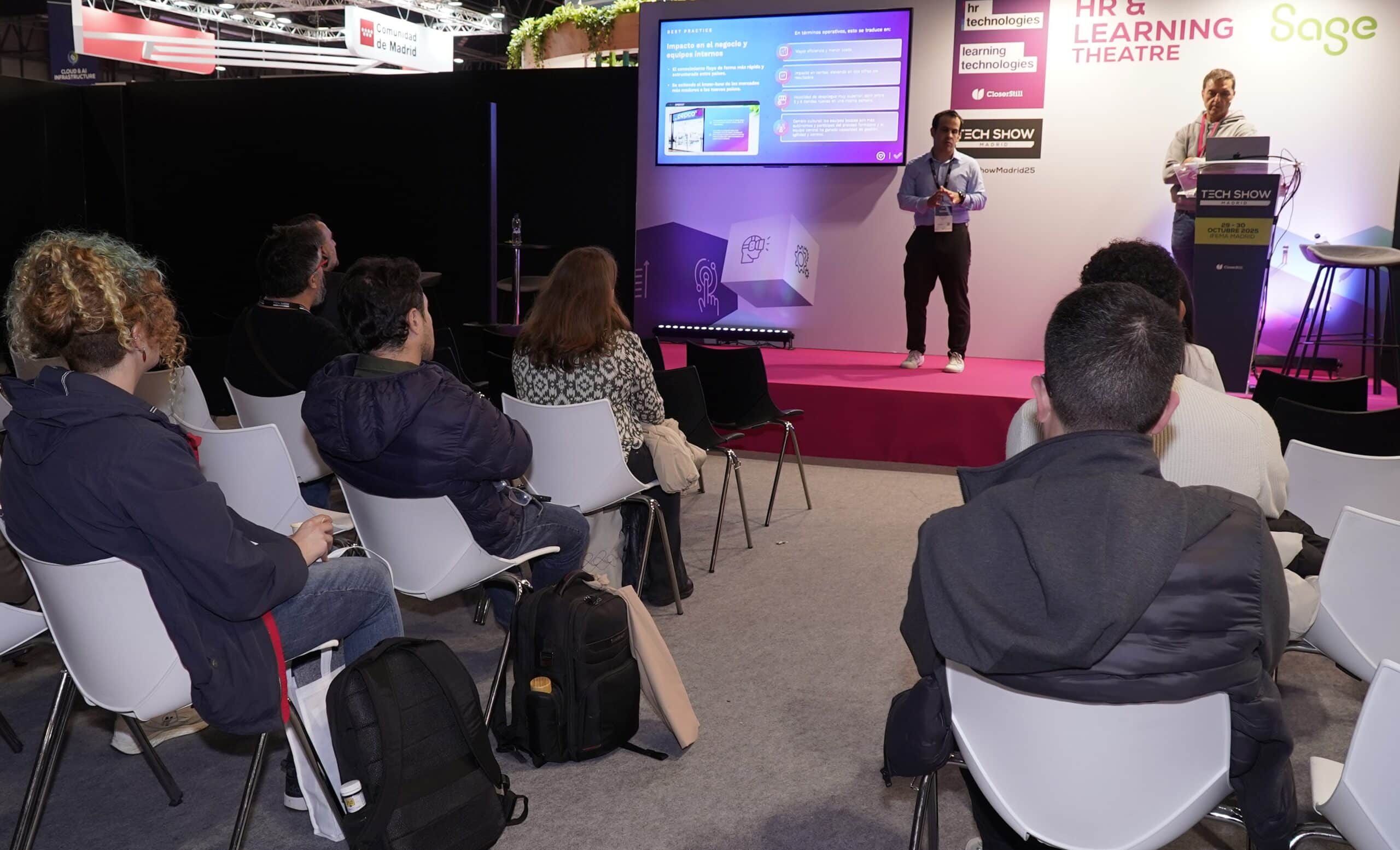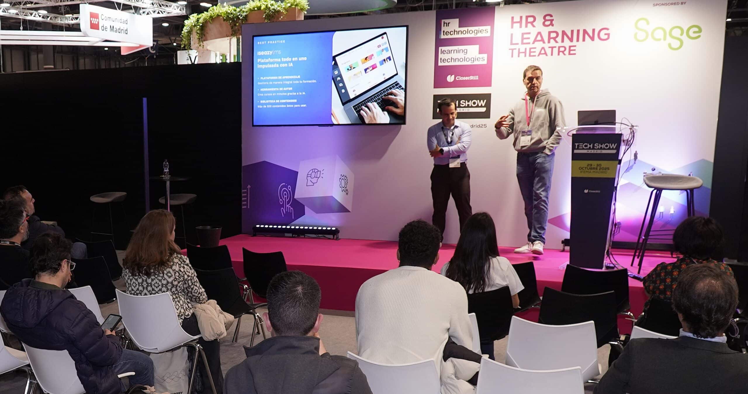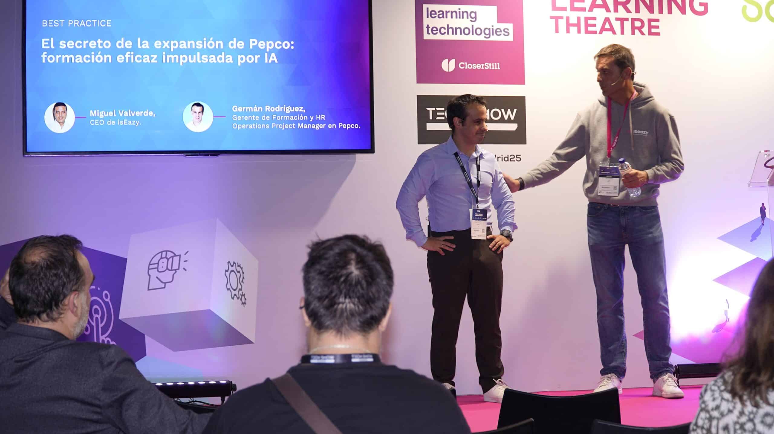 A isEazy participou como patrocinadora e expositora no evento, além de apresentar uma Best Practice com um de nossos clientes no palco do HR & Learning Theatre: “O segredo da expansão da Pepco: formação eficaz impulsionada por IA”, com Germán Rodríguez, HR Operations Project Manager da Pepco Iberia, e nosso CEO, Miguel Valverde.