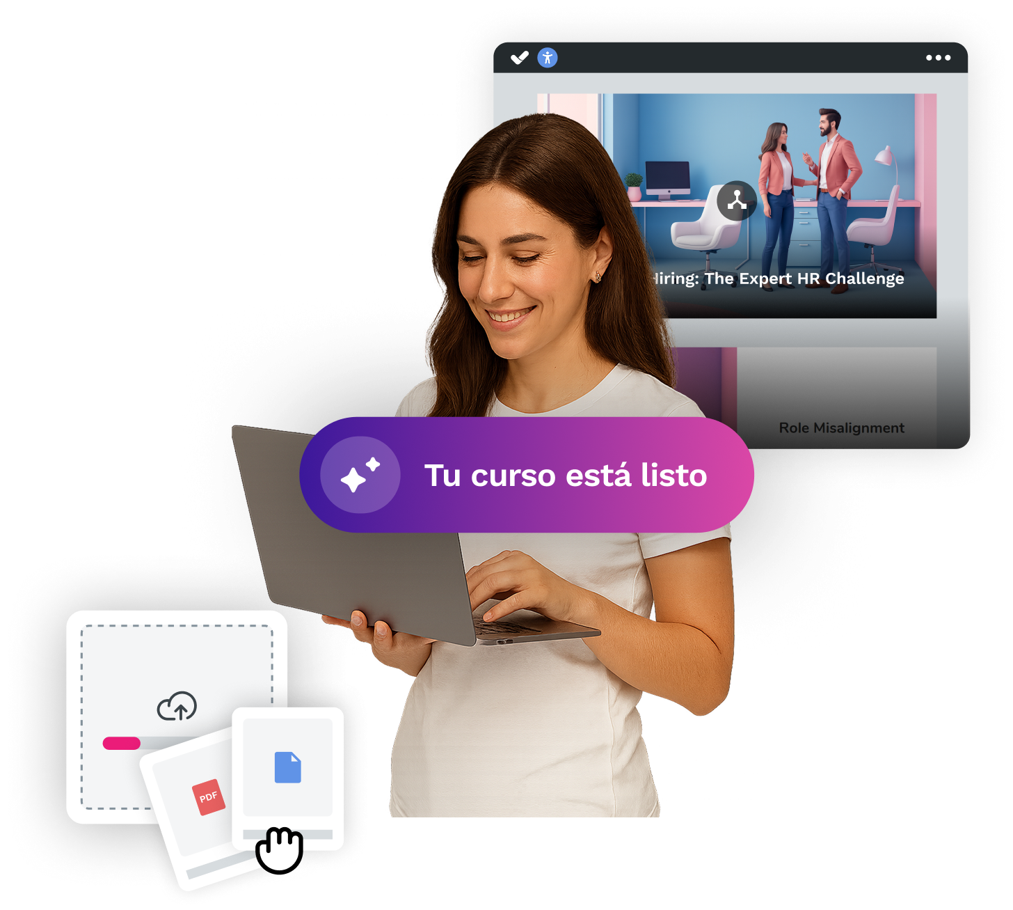 Además, con el nuevo AI Autopilot podrás crear un curso completo a partir de una simple idea o de tu documentación corporativa. Con estructura pedagógica, interactividad y diseño profesional, en cuestión de minutos.